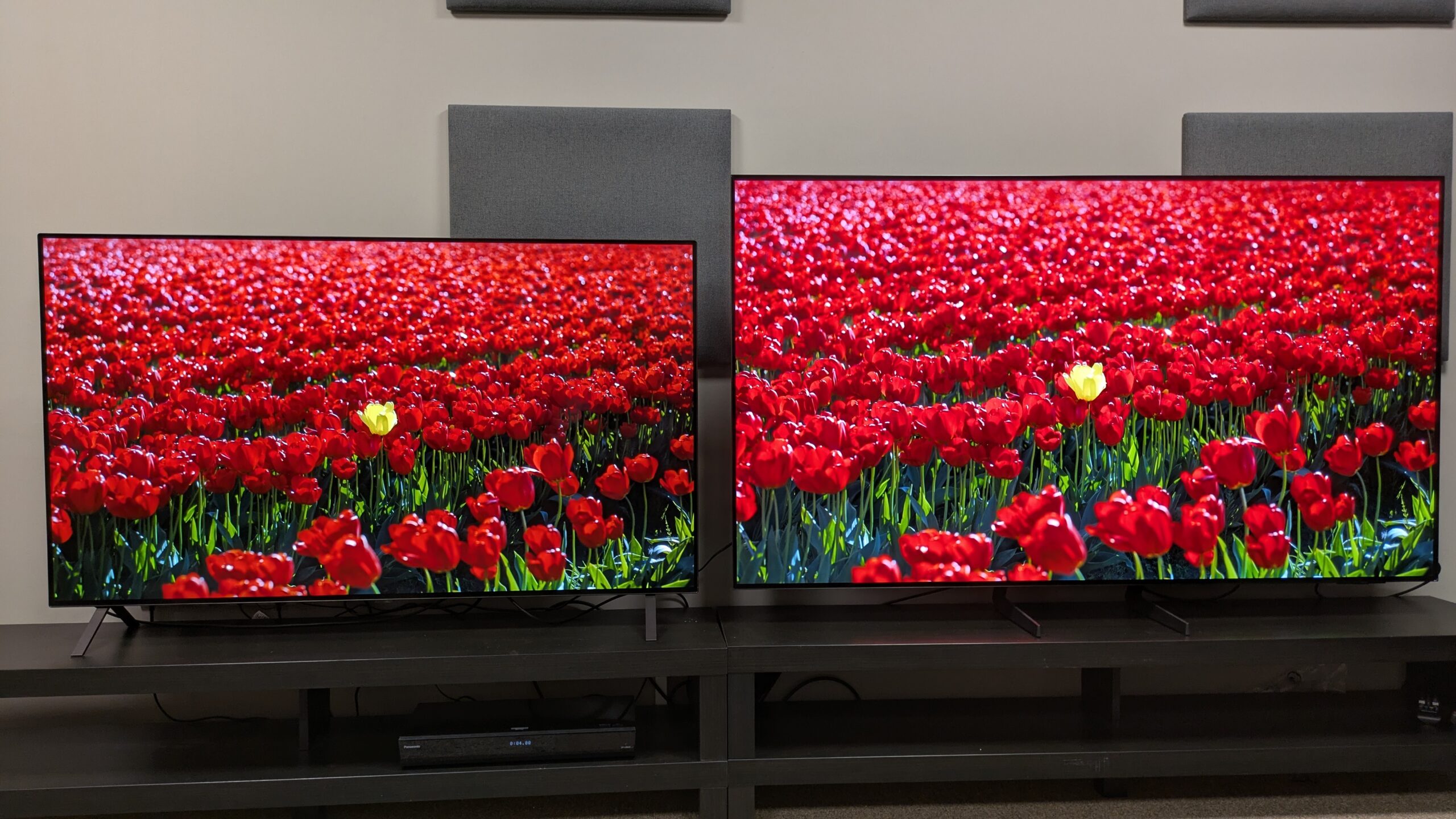 Both LG B5 (left) and Samsung S85F (right) showed great contrast, but B5 improved the dark colors better. (Image Credit: Warner Bruce / Future)