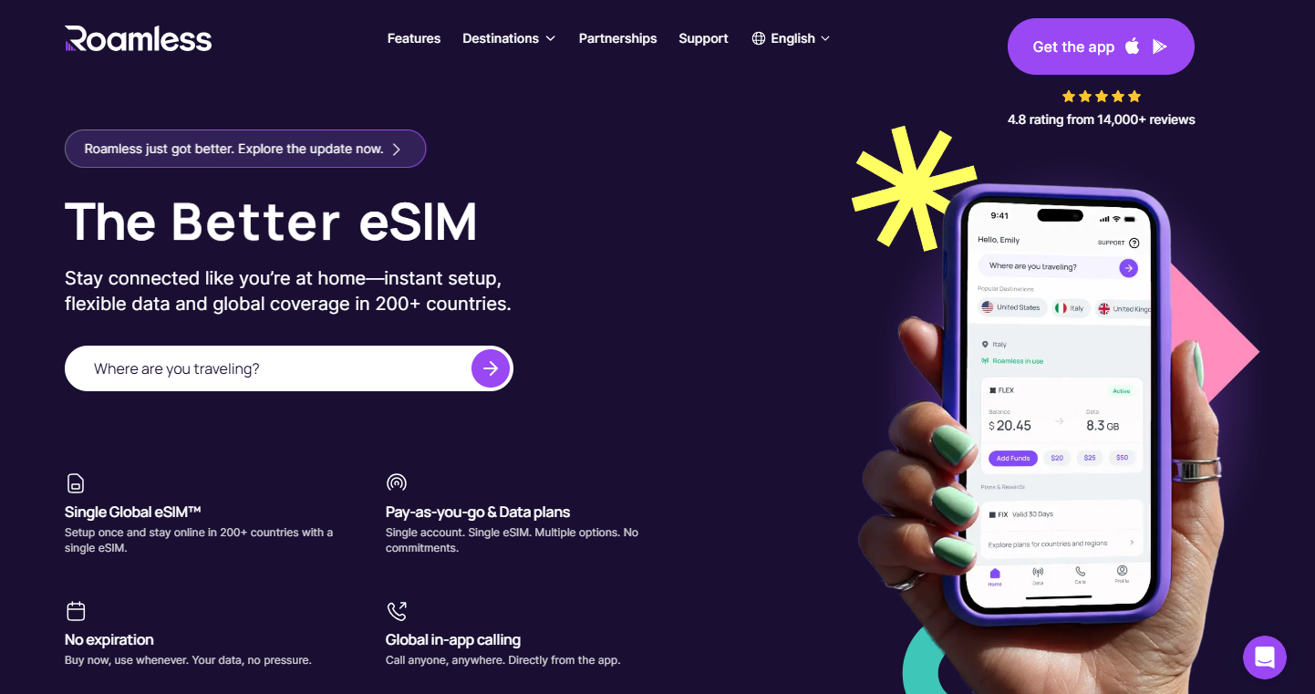 It provides reliable connectivity for frequent travelers, regardless of region. Although it has some downsides, Roomless is one of the best ESIM providers you can choose.